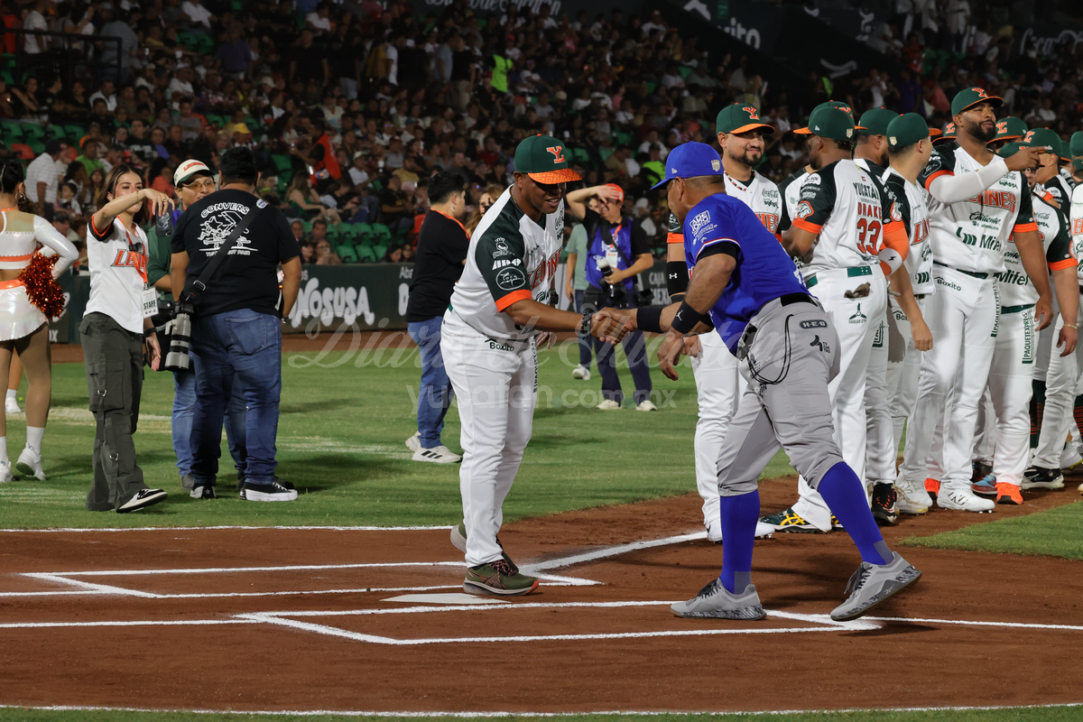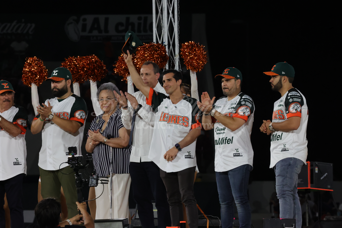 La ceremonia protocolaria contó con la presencia de los propietarios de los Leones, los hermanos Juan José y Erick Arellano Hernández; la señora Guadalupe Puerto viuda de Ricalde (doña Lupita, quien siempre representa al fallecido don Gustavo Ricalde Durán, que los hizo campeones en 2006); Horacio de la Vega, presidente de la Liga Mexicana; Rómmel Pacheco Marrufo, director de la Conade; Armín Lizama Córdova, director del Instituto del Deporte, encargado de lanzar la primera bola, y María Cristina Castillo Espinosa, síndica del Ayuntamiento de Mérida.