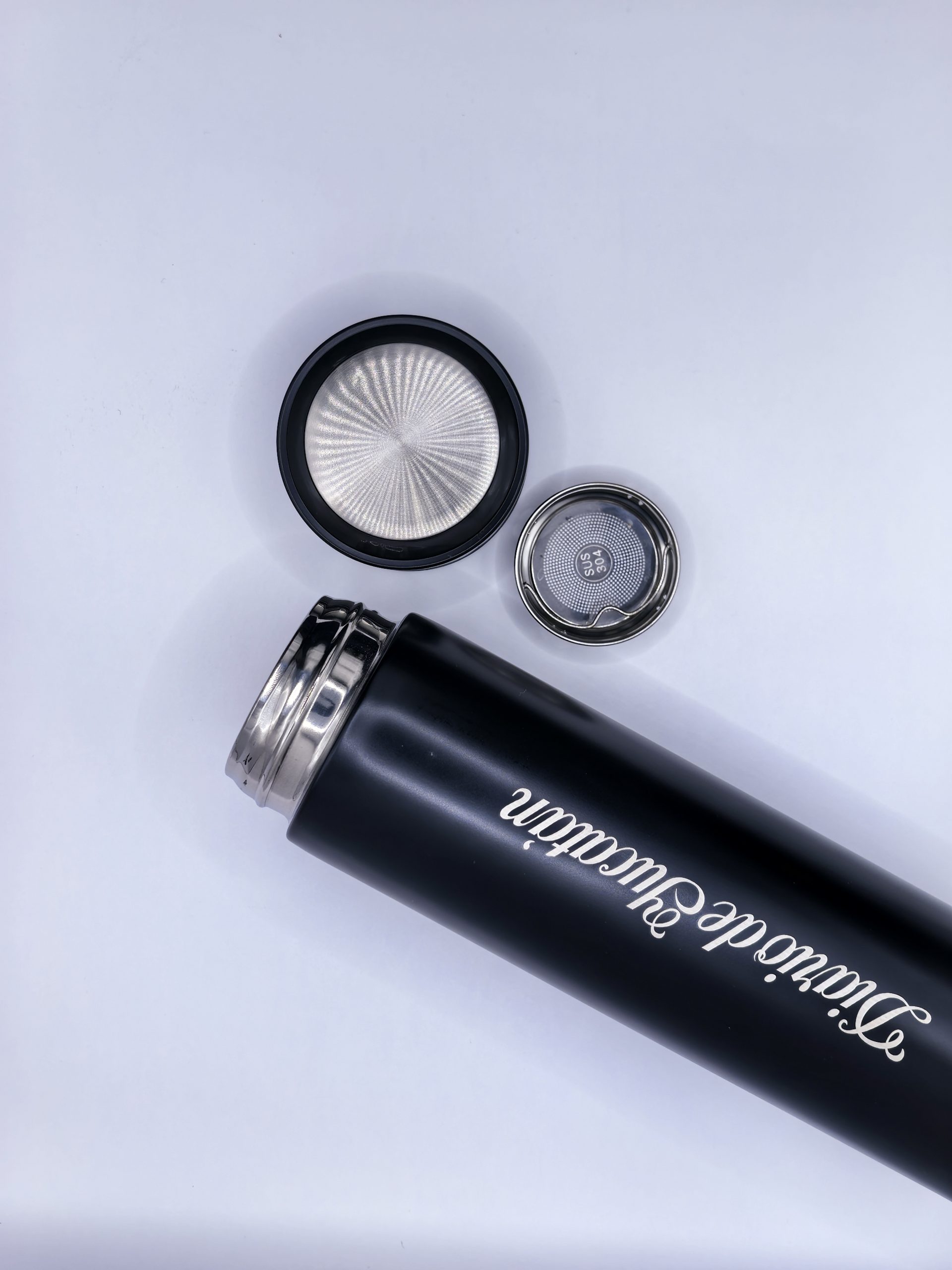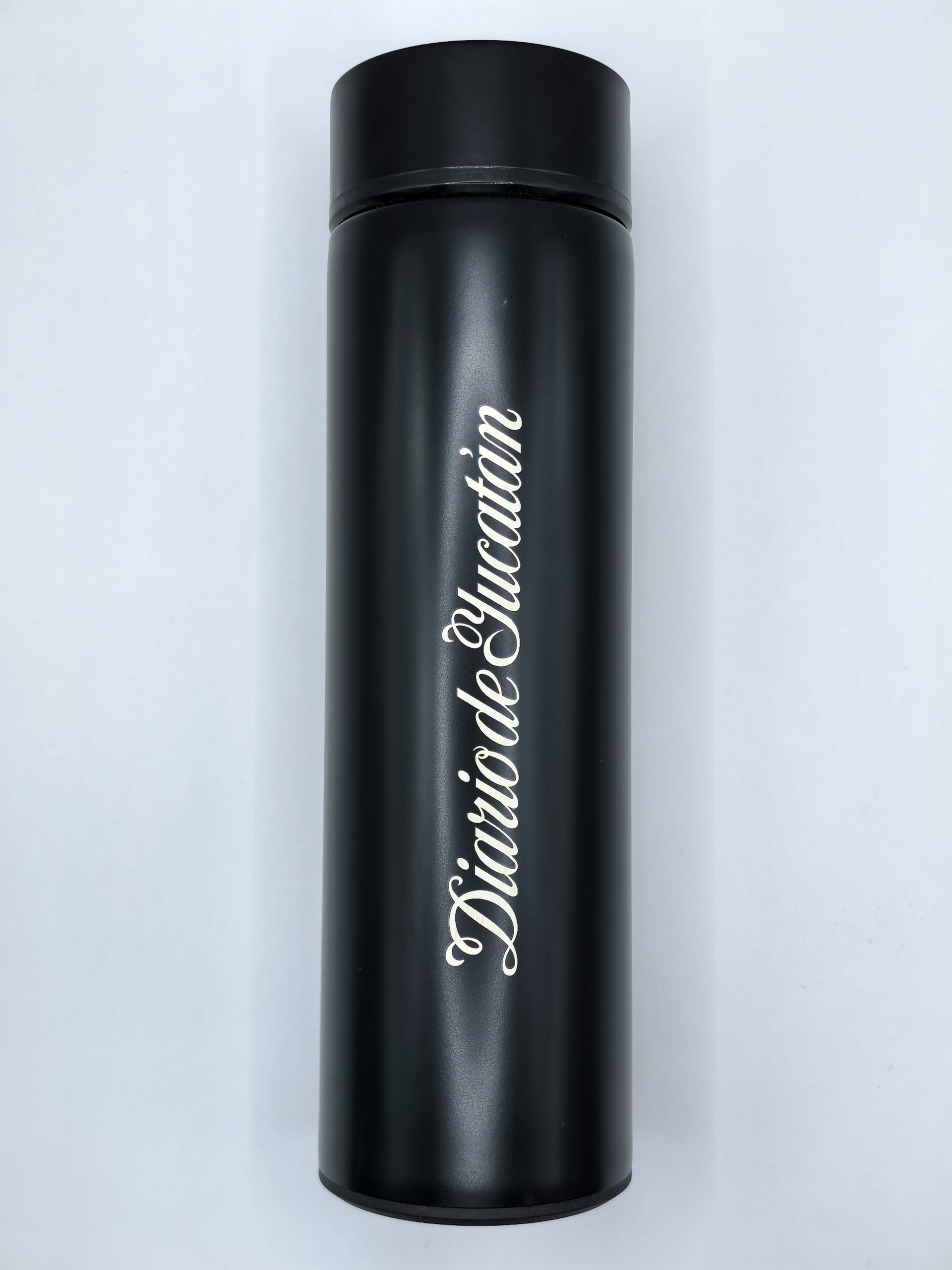Cilindro con doble pared de acero inoxidable, capacidad de 500 ml, acabado liso. Incluye tapa enroscable y filtro de infusión.