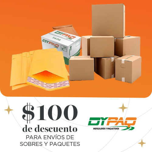 Club Diario de Yucatán a través de Dypaq ofrece $100 de descuento para envíos de sobres y paquetes, presentando cupón físico de descuento (solicita tu cuponera del club vía WhatsApp, en Atención al suscriptor al 9993502287). Mayor información sobre oficinas Dypaq y horarios, por WhatsApp al 9992428694 o llamando al 800 000 6000. Para hacer uso de este cupón no se podrá emitir factura por el servicio contratado. Aplica para envíos desde mostradores: Umán y Sucursal 47 Mérida Yucatán. Los cupones no son acumulables.