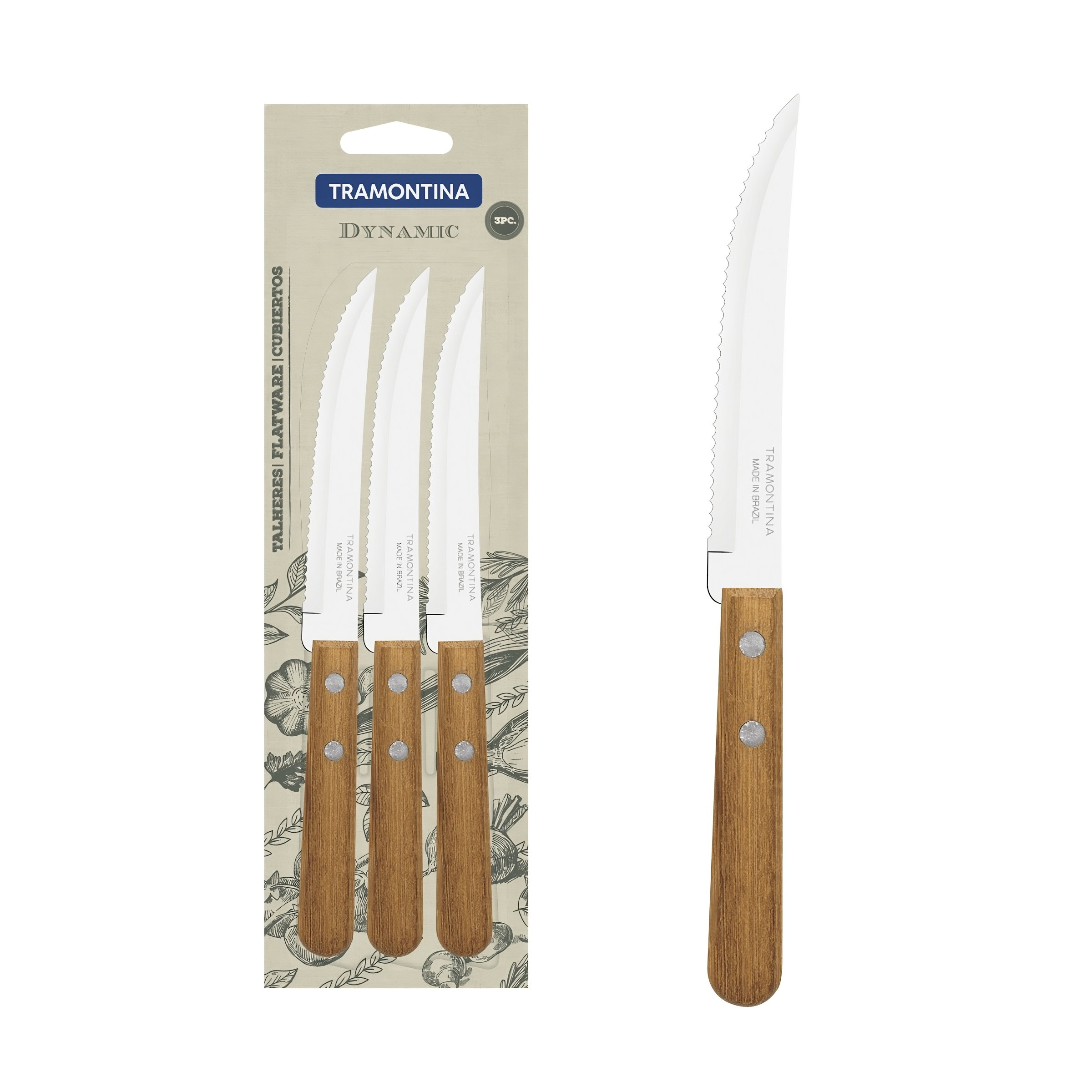 Con filo dentado es ideal para corte de carnes cocidas y frutas.
