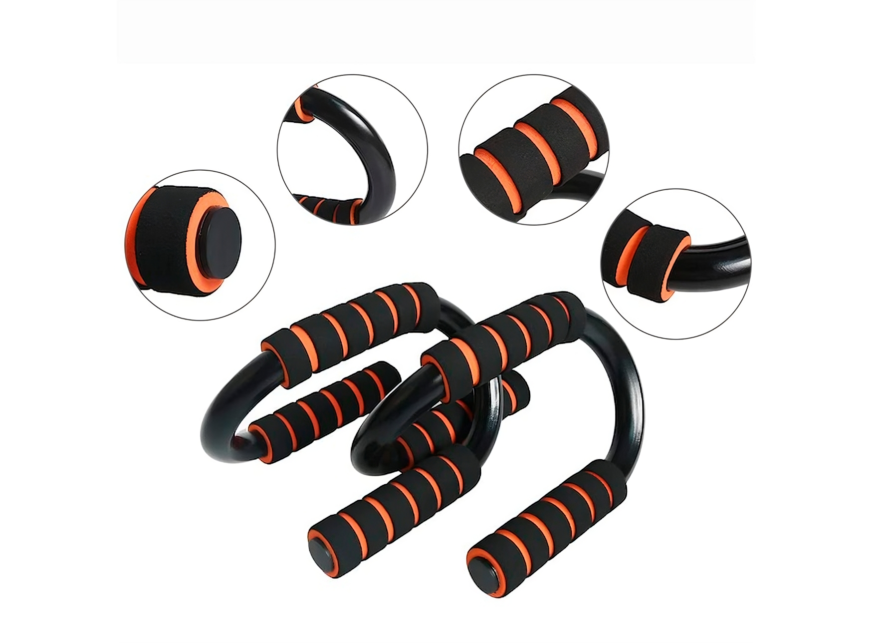 Juego de barras de soporte para ejercicio. Su diseño es ergonómico, y tiene una fuerza triangular estable, la cual proporciona más estabilidad, más apoyo y firmeza. Son ligeras y son fáciles de almacenar.
