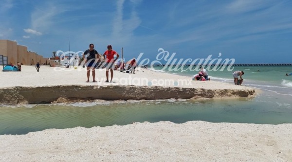 Dos “bocanas” aparecieron en la playa del malecón tradicional de Progreso como efecto de la turbonada que azotó el jueves al puerto.