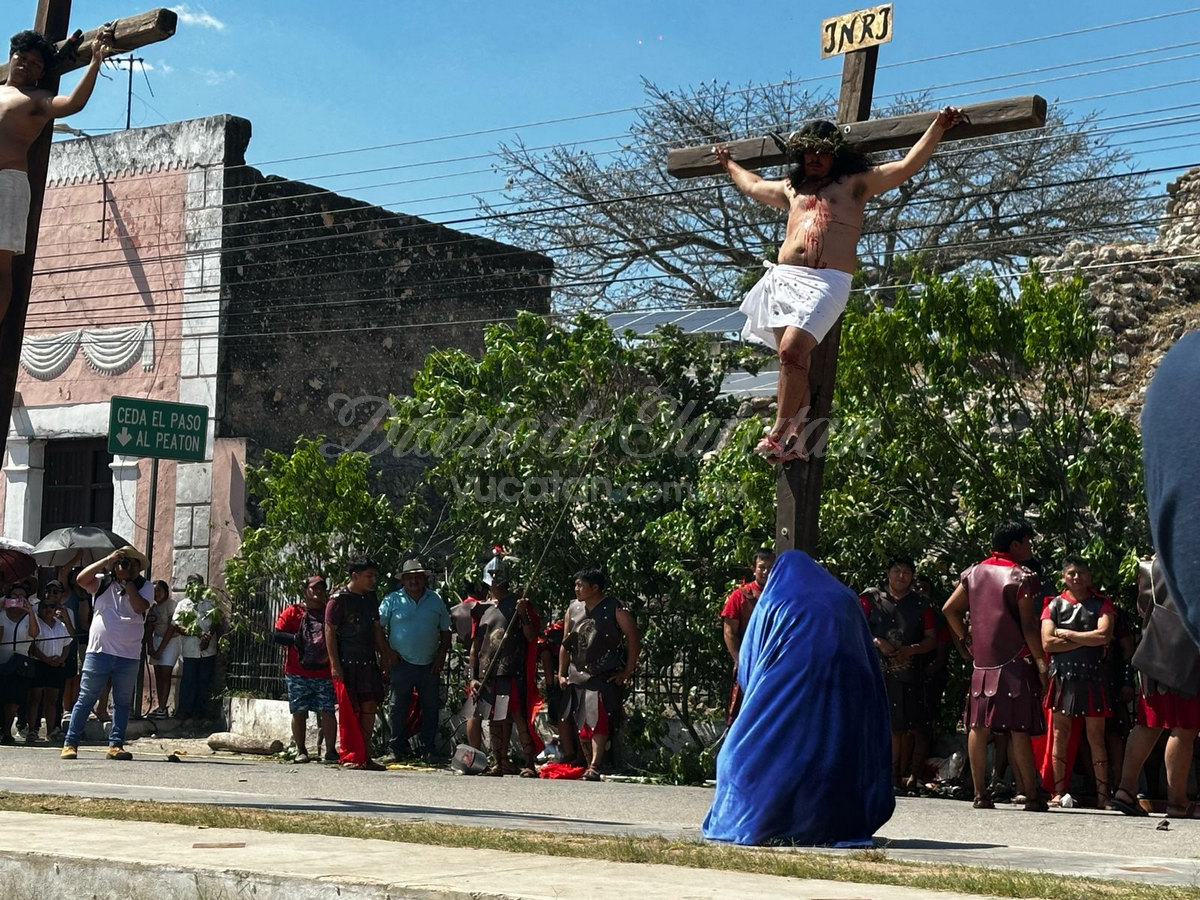 Hubo gritos, suspiros, lágrimas y aplausos en el pueblo de Acanceh, donde se revivió este Viernes Santo la pasión y muerte de Jesucristo en una gran representación que cumplió 45 años de realizarse, y que nuevamente atrajo a cientos de personas bajo el ardiente sol del mediodía.